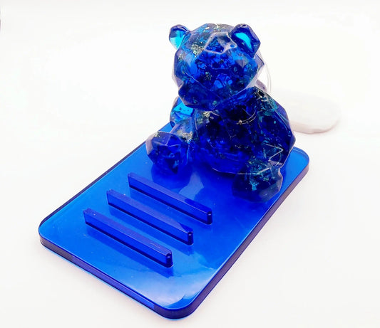 Support de téléphone OURSON en résine. Bleu avec Leds