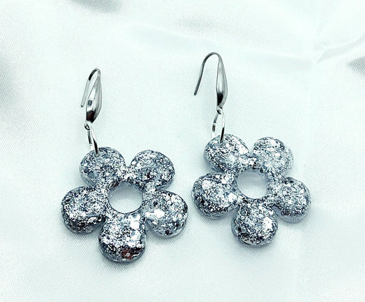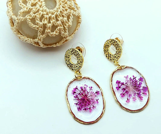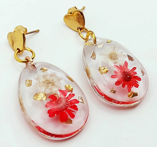 Boucles d'oreilles FLEURS DANS UNE GOUTTE D'EAU en résine