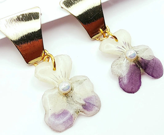 Boucles d'oreilles FLEURS DE PENSEES en résine