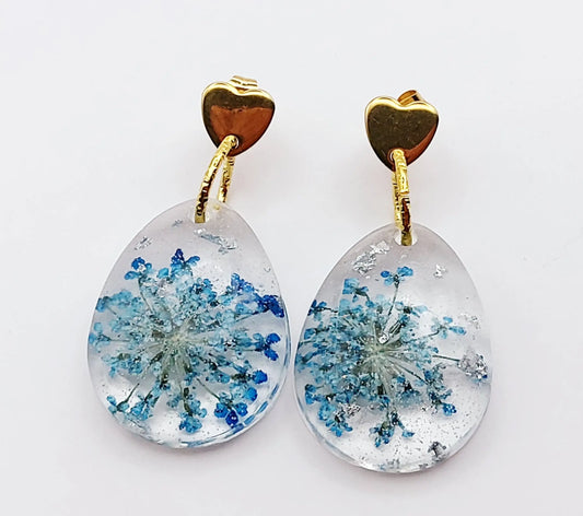 Boucles d'oreilles FLEUR BLEUE DANS UNE GOUTTE D'EAU