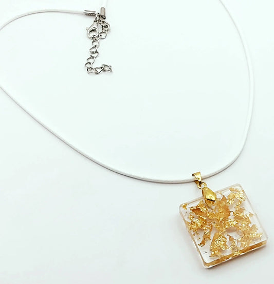 Pendentif CARRÉ en résine époxy - Transparent, feuille d'or