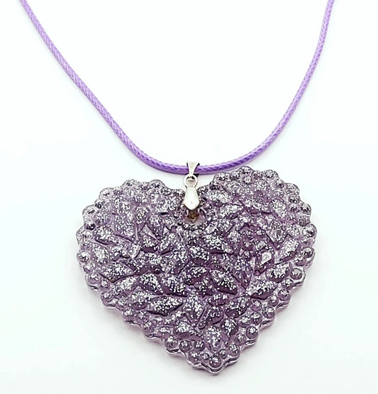 Pendentif "Coeur fleuri", en résine époxy