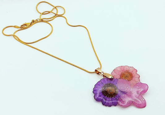 Pendentif 3 FLEURS UNIES en résine et sa chaîne