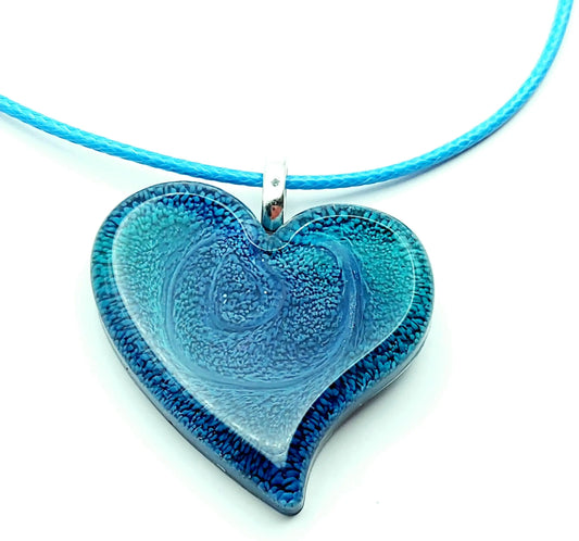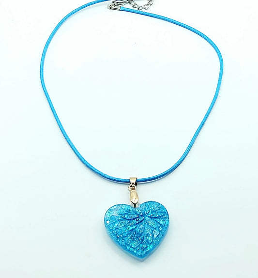 Pendentif PETIT COEUR en résine époxy - Paillettes bleues