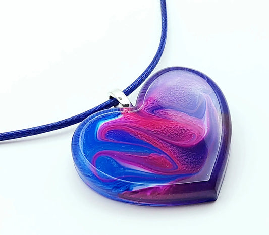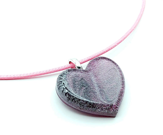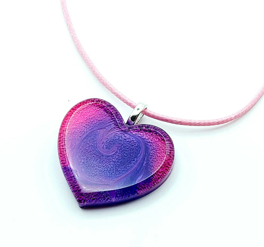 Pendentif PETIT COEUR en résine époxy - Effet pétri rose et violet