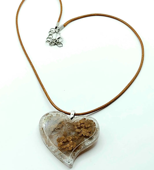 Pendentif PETIT COEUR en résine époxy - Effet pétri marron