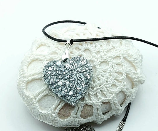 Pendentif PETIT COEUR en résine époxy - Paillettes argentées