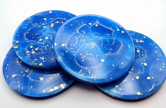 Ensemble de 4 DESSOUS DE VERRES en résine. Bleu, rouge et blanc
