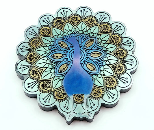 Ensemble de 2 Dessous de verres en résine - Motif "Paons"