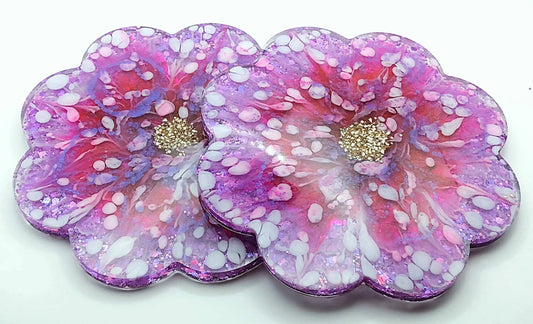 Ensemble de 2 DESSOUS DE VERRES en résine époxy. Fleurs mauves