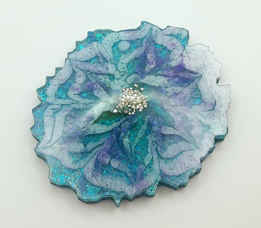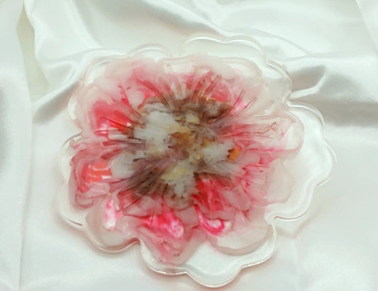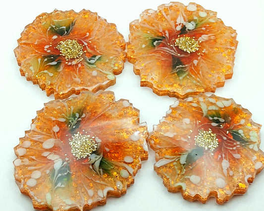 Ensemble de 4 DESSOUS DE VERRES FLEURS en résine époxy