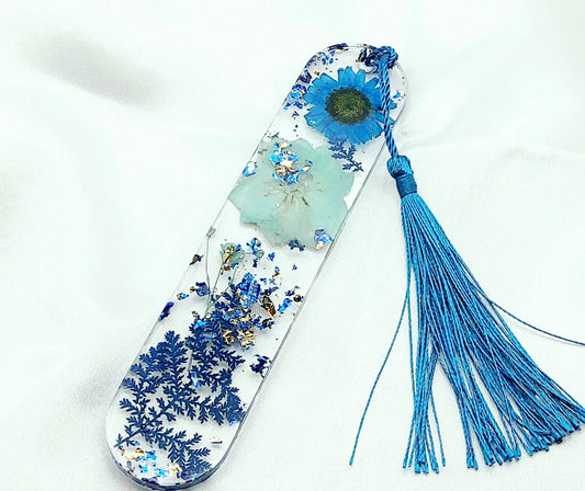 MARQUE-PAGES en résine époxy. Fleurs bleues