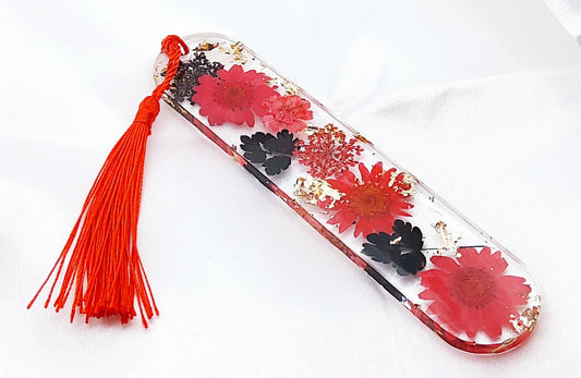 MARQUE-PAGES en résine époxy. Fleurs rouges et noires