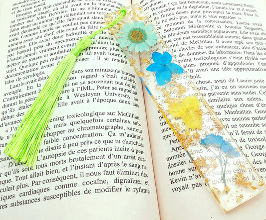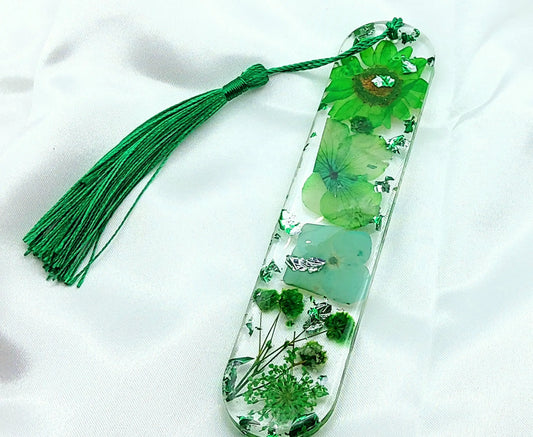 MARQUE-PAGES en résine époxy. Fleurs vertes