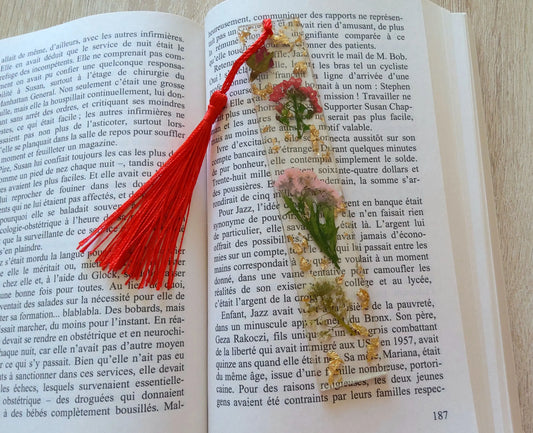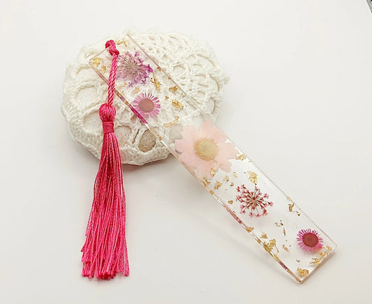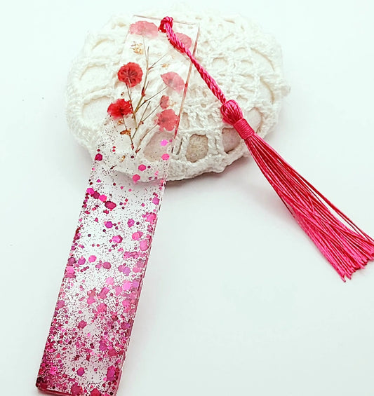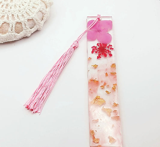 MARQUE-PAGES en résine époxy. Fleurs rouges et roses