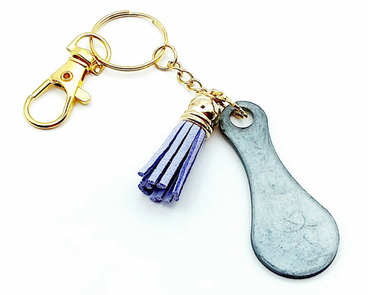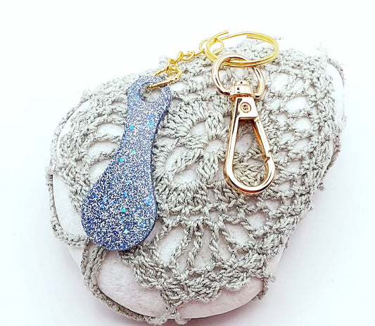 Porte-clés JETON DE CADDIE en résine. Paillettes gris bleu