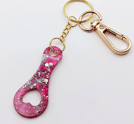 Porte-clés JETON DE CADDIE en résine. Paillettes fuchsia et argent