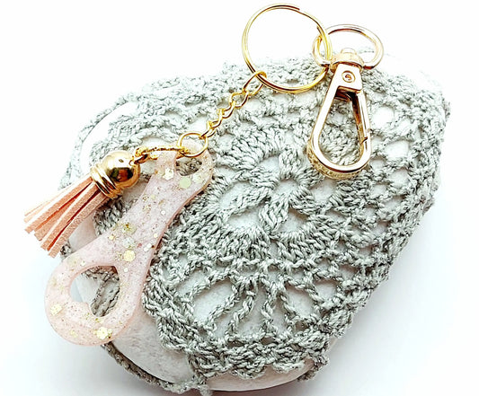 Porte-clés JETON DE CADDIE en résine. Rose poudré, paillettes dorées