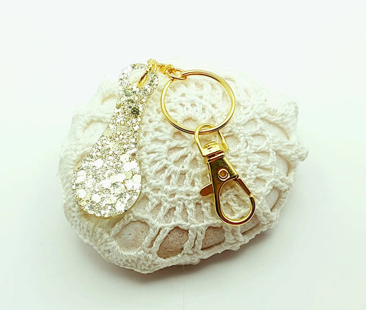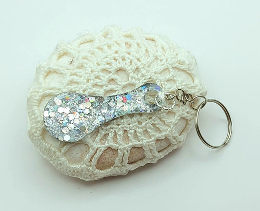 Porte-clés JETON DE CADDIE en résine. Paillettes holographiques argentées
