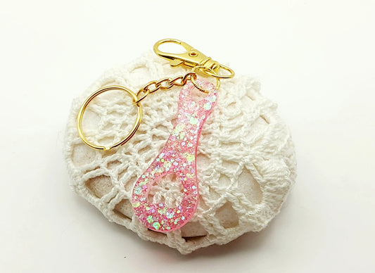 Porte-clés JETON DE CADDIE en résine. Translucide, rose et paillettes holographiques
