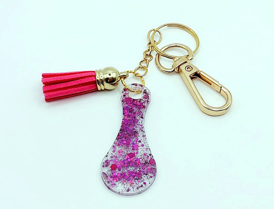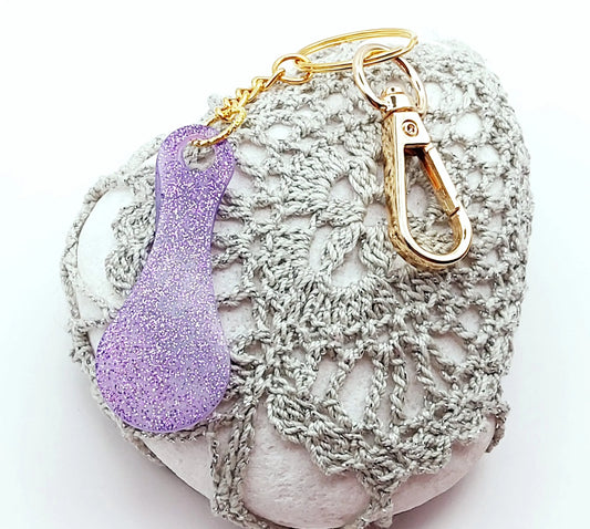 Porte-clés JETON DE CADDIE en résine. Paillettes mauves