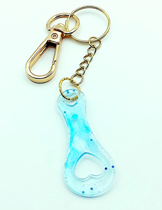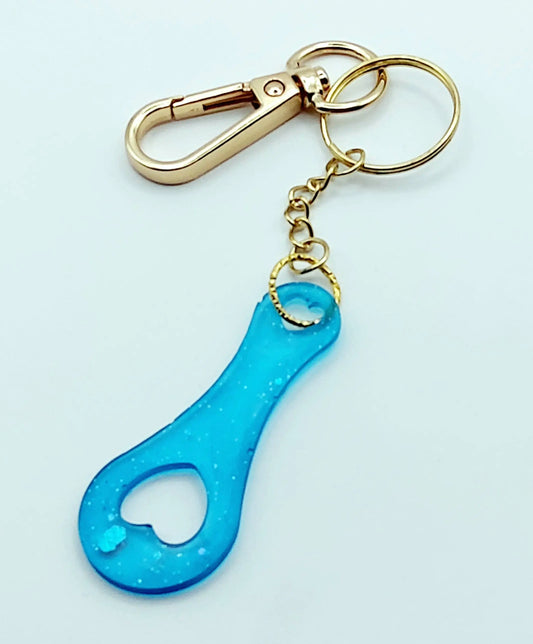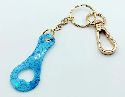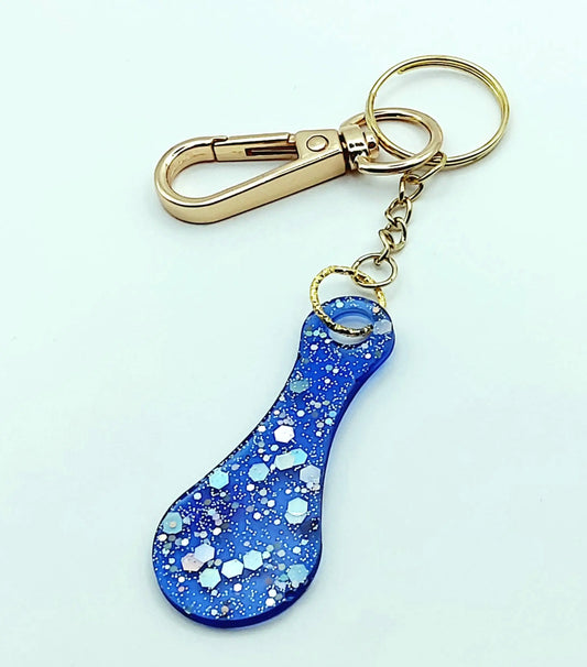 Porte-clés JETON DE CADDIE en résine. Bleu clair, Paillettes bleues