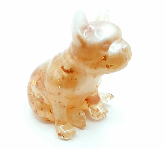 Figurine BOULEDOGUE en résine. Beige et feuille de cuivre