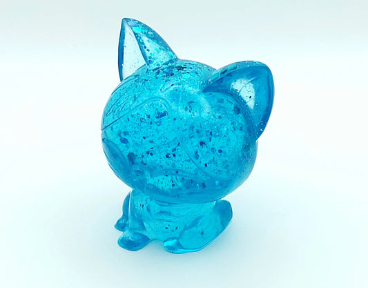 Figurine CHAT KAWAII en résine époxy - Turquoise translucide
