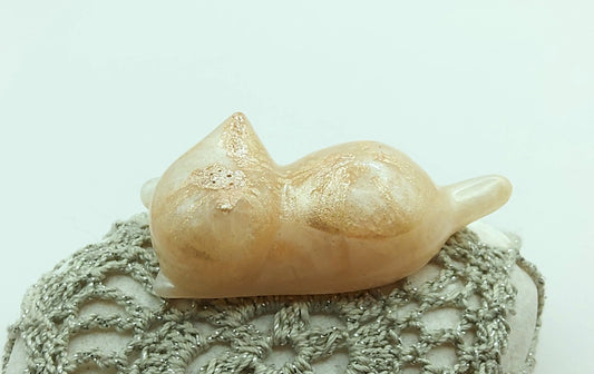 Figurine CHATON COUCHÉ en résine époxy - Beige nacré