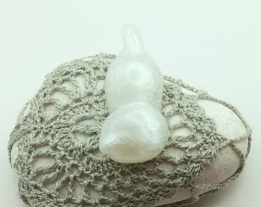 Figurine CHATON COUCHÉ en résine époxy - Blanc nacré