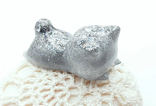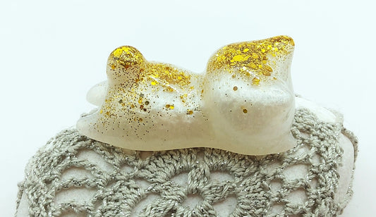 Figurine CHATON COUCHÉ en résine époxy - Blanc, paillettes dorées