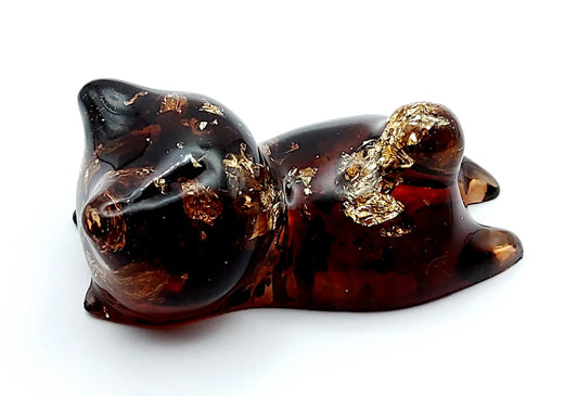 Figurine CHATON COUCHÉ en résine époxy - Marron, feuille d'or