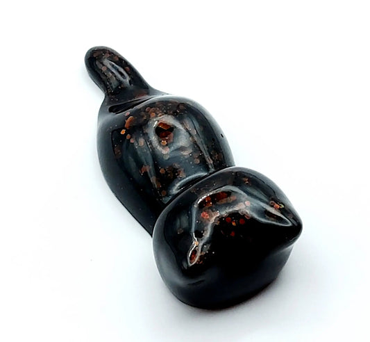 Figurine CHATON COUCHÉ en résine époxy - Noir, paillettes cuivrées