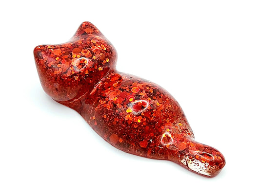 Figurine "Chaton couché" en résine époxy - Paillettes rouges