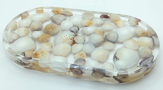 Vide-poches OVALE en résine époxy - Beige, blanc et or