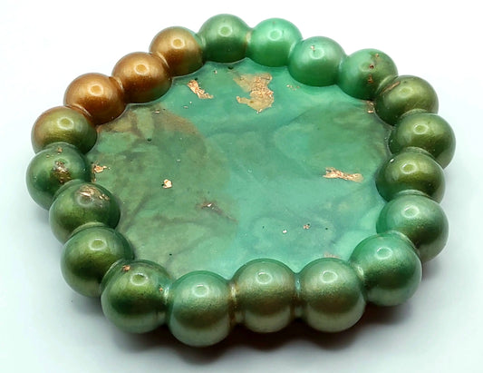Vide-poches Pentagone BULLES en résine époxy - Vert et cuivré